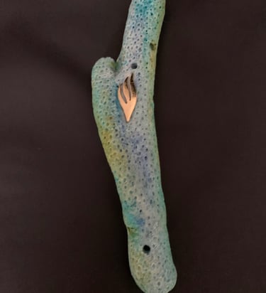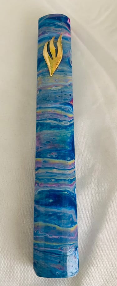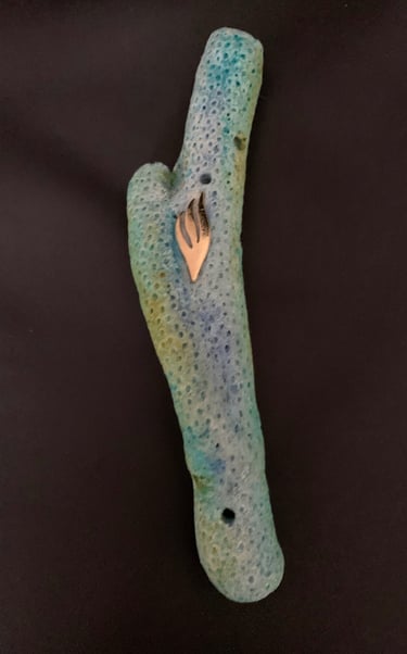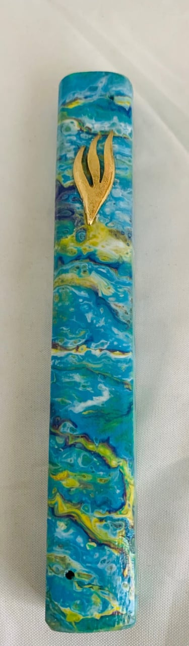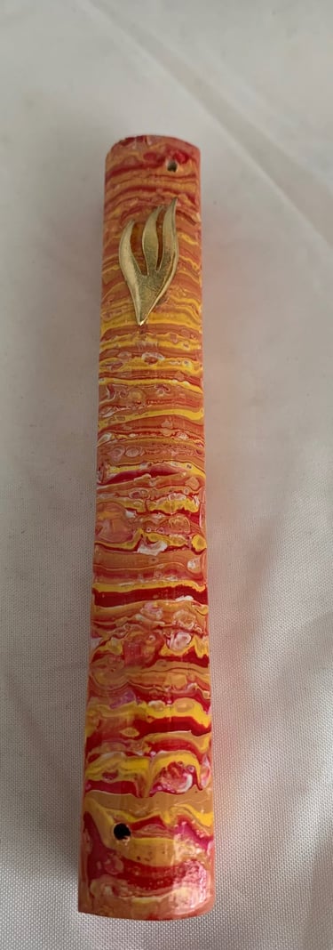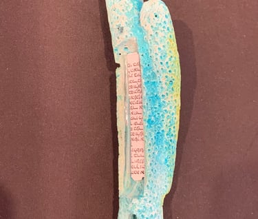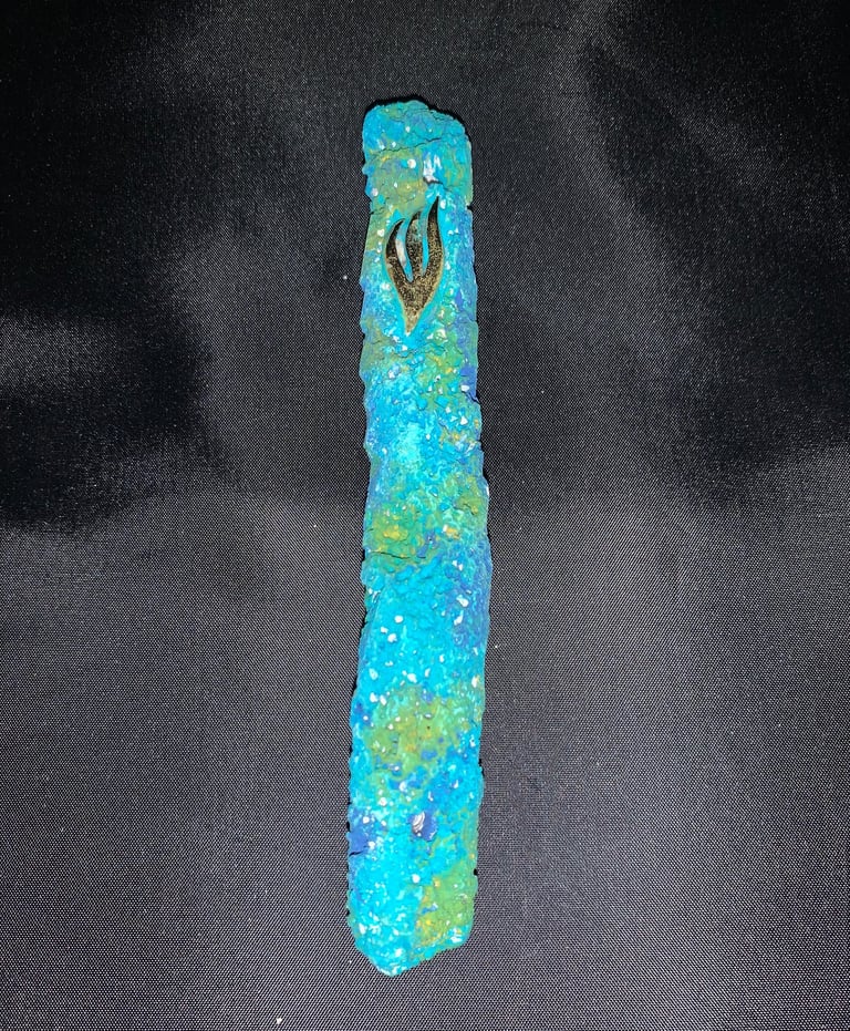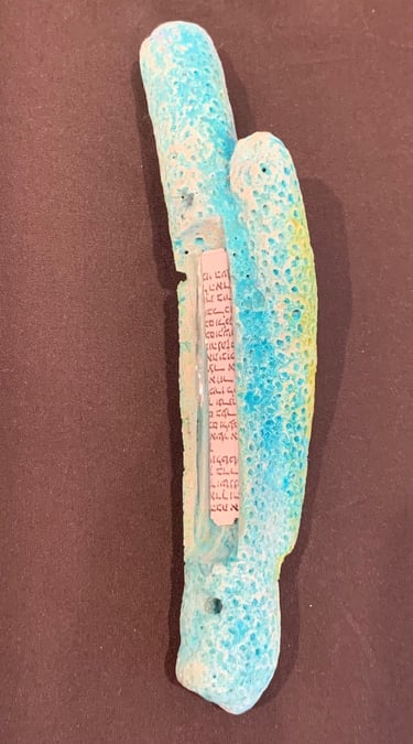 This very special piece of coral was quieting waiting on a rocky beach about to be smashed by the waves. We reclaimed it and cut a large channel in their rear for a scroll. It comes with a non kosher scroll which can easily be changed and screwed to the doorpost