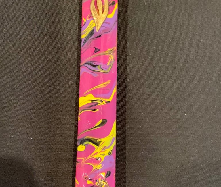 A very unique piece of coral that was shaped and recolored to have a very vibrant appeal on your doorpost. It has a cut out in the rear with a wooden block keeping the scroll in place. It comes with 2 sized screws to mount on your doorpost ..